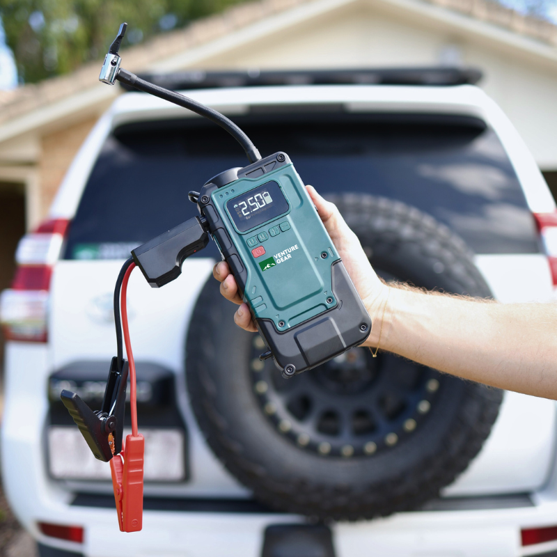 Yes, it's capable of inflating larger 4WD sized tyres as well as jump starting engine sizes up to 5.0L petrol/3.0L diesel.